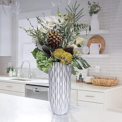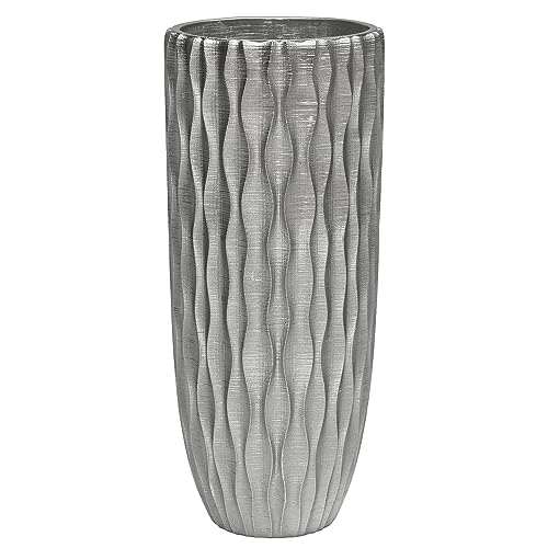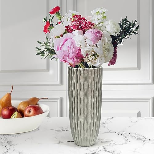 Handmade Metal Effect Silver Vase for Fresh&Dried Flowers,Plants-13 Tall,Elegant Nordic Water Ripple Pattern,Modern Resin Vase for Home Living Room Floor or Table Decor, Farmhouse decorat
